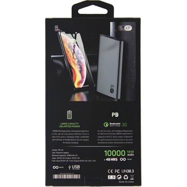 پاوربانک کی پی مدل PD-03 ظرفیت 10000 میلی آمپر ساعت