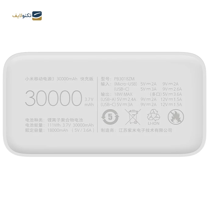 ظرفیت: 30000 میلی آمپرساعت